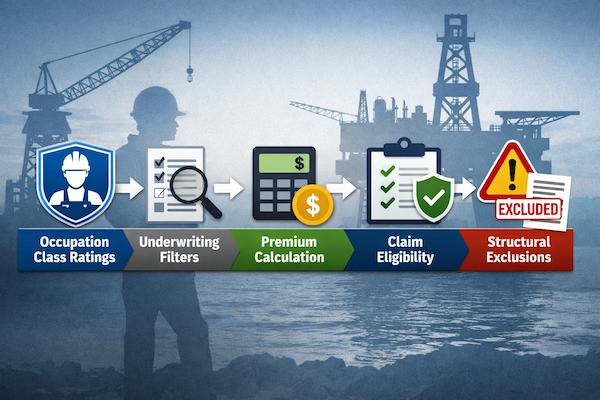 According to the Occupational Safety and Health Administration and the National Institute for Occupational Safety and Health, injury frequency and severity vary materially across industries. Occupation class ratings convert those exposure differentials into actuarial pricing tiers. Classification governs approval probability, premium load, benefit definitions, and structural exclusions within high-risk job insurance systems. Pricing reflects exposure volatility and long-duration claim risk.